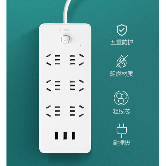 公牛/BULL UUN153 插座 USB3位 6孔 1.8m 白色
